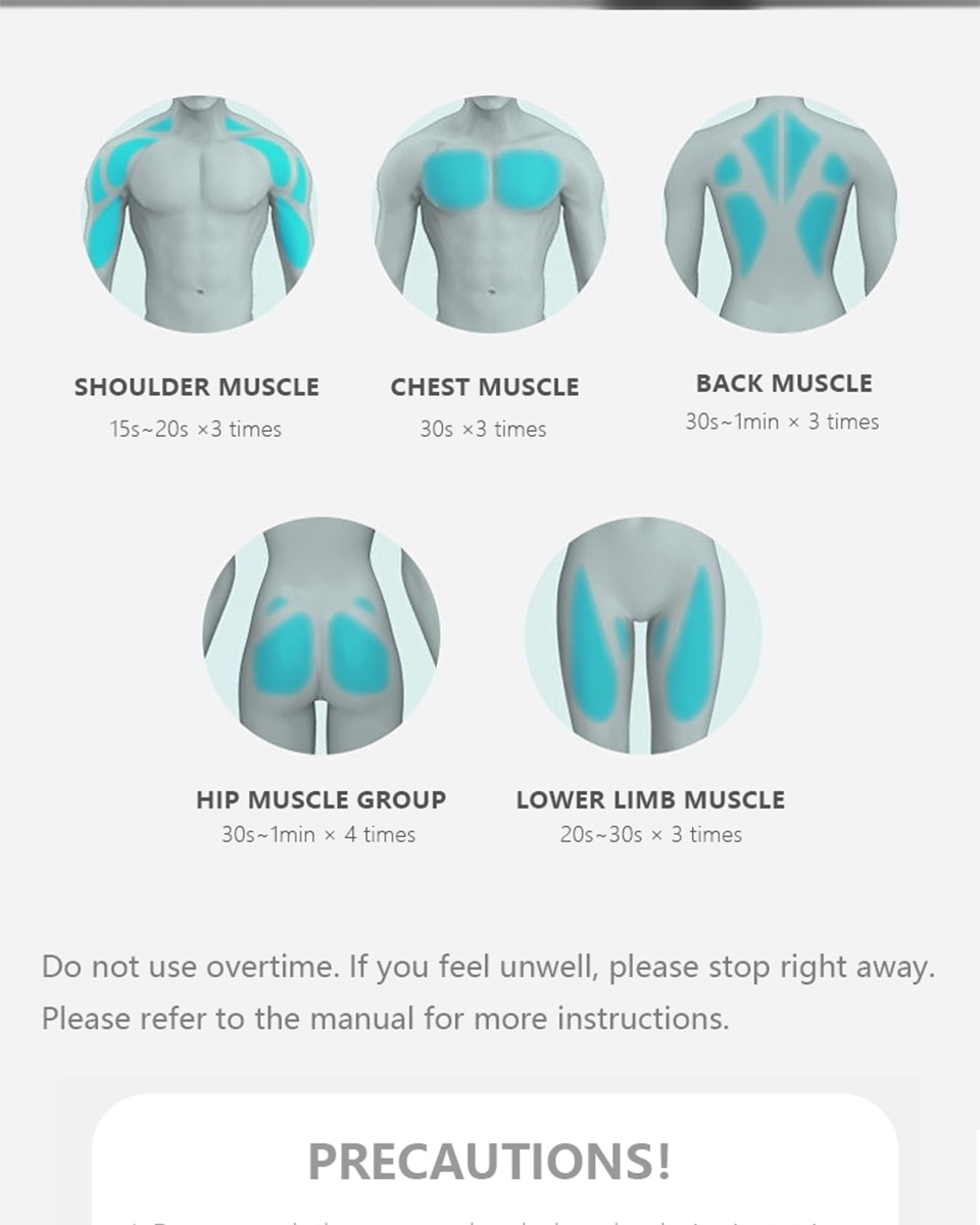 Q&A1.Q:Does the product have a warranty? What to do if there is an after-sales problem? A:Our products have an 18-month warranty and we will provide after-sales service. If there is any problem with the product, please feel free to contact us at first time, we will help you solve the problem.2.Q:How long does it take to ship?Will provide the tracking number? A:We have warehouses in the United States, Russia, France, Spain, Poland, and the Czech Republic. In the case of stock in overseas warehouse, it will be shipped from the nearest warehouse according to the receiving address. If shipping from China, we will choose fast logistics, usually you can receive the package within 10-20 working days after payment. We will provide tracking number for each order.3.Q:Do you provide an English manual? A:We provide an English manual in the package.4.Q:What if I am not satisfied with the product? A:If you are not satisfied after receiving the goods, please contact us as soon as possible. Free return and exchange within 15 days of receipt.5.Q:How about the quality of the products? A:My friend,please don’t worry about the quality. Booster is a top brand in China,our philosophy is to use technology to protect health and focus on the field of sports recovery. We are committed to producing products with guaranteed quality.